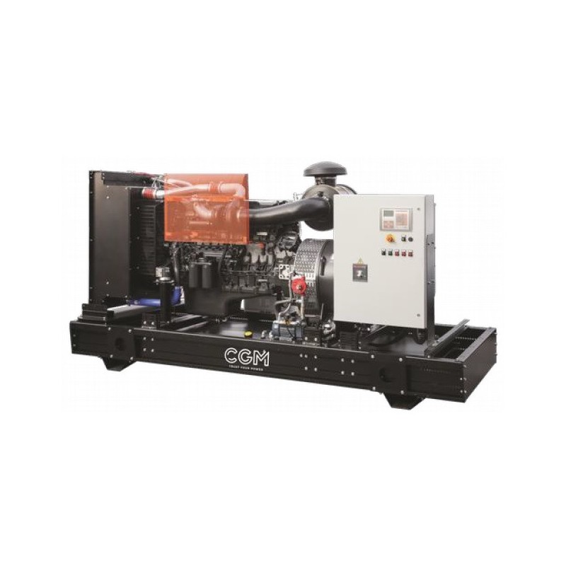 The CGM 400P-B400 is a single/three phase 400KVA generator with a 1500 rpm Perkins diesel engine, compact and easy to use, mounted on a fixed base. This CGM 400P-B400 generator is in an open version and is easy to handle and transport thanks to its base with pivoting feet.