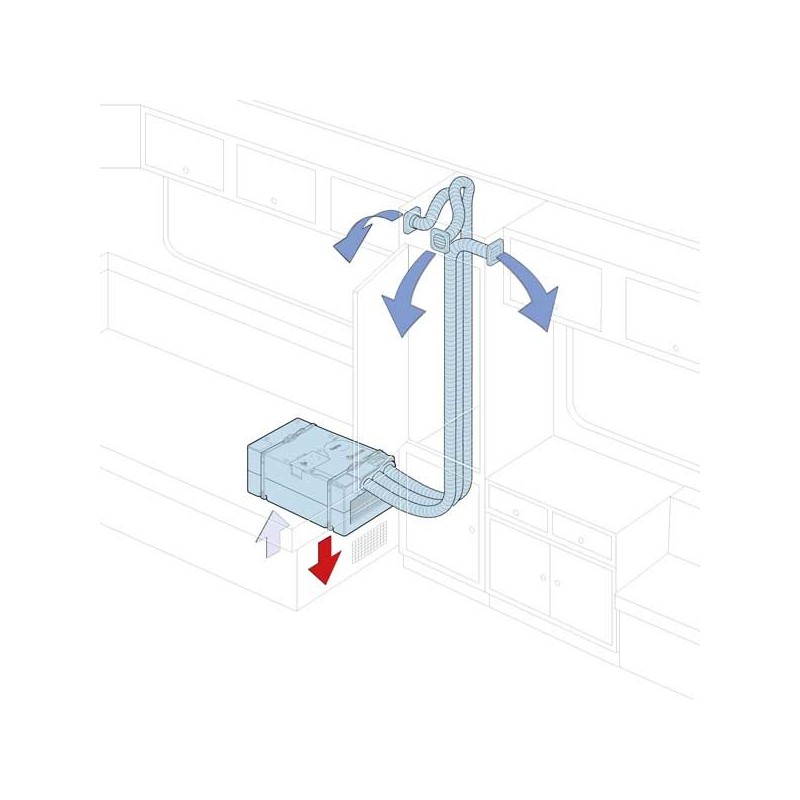 Truma Saphir compact IR 1800W compact is installed centrally in a storage compartment, e.g. under a chest, so that the cold air is distributed evenly throughout the motorhome or caravan.