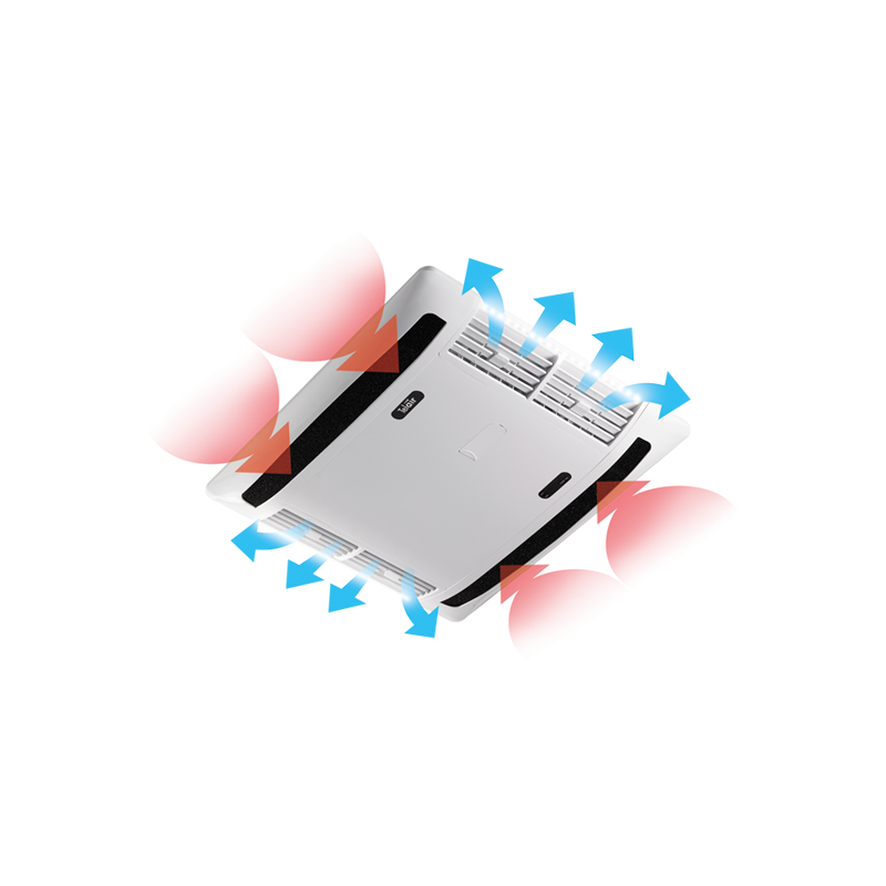 The TELAIR DUALCLIMA 12500H is equipped with a super flat diffuser with a profile that degrades on all 4 sides.