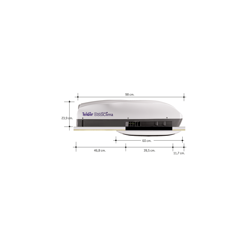 TELAIR DUALCLIMA 12500H monoblock air conditioner with heat pump designed specifically for installation on the roof of medium and large motorhomes and caravans. Particular care has been taken to ensure that the TELAIR DUALCLIMA 12500H is silent both inside and outside.