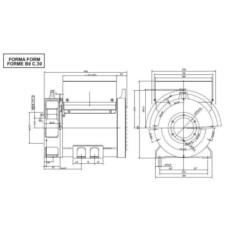 Maximum dimensions: 596x322x408.5h cm in B14 bearing form
