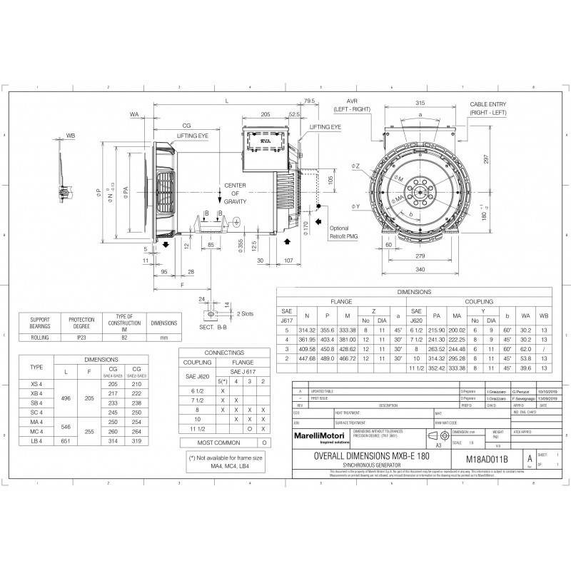 MARELLIMOTORI MXB-E 180MC4 is a Alternator with a power of 50KVA 40KW, this unit has a self-exciting and selfregulating Brushless operation.