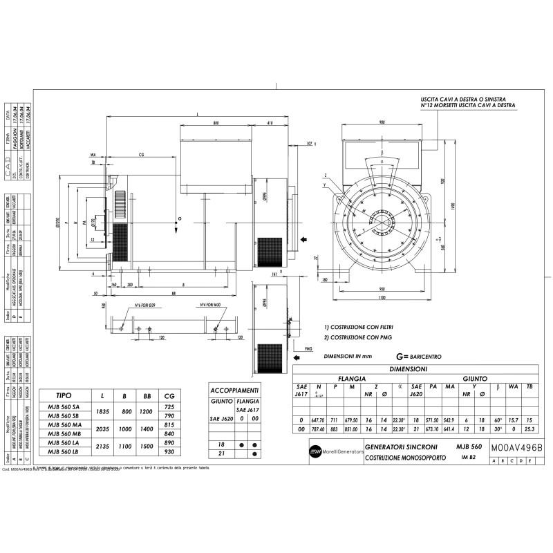 MARELLIMOTORI MJB 560MA4 is a three-phase alternator capable of delivering a power of 2600KVA 2080KW, comes complete with AVR.
