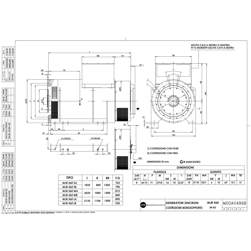 TECHNICAL FEATURES OF THE ALTERNATOR 2600KVA THREE-PHASE MJB 560MA4