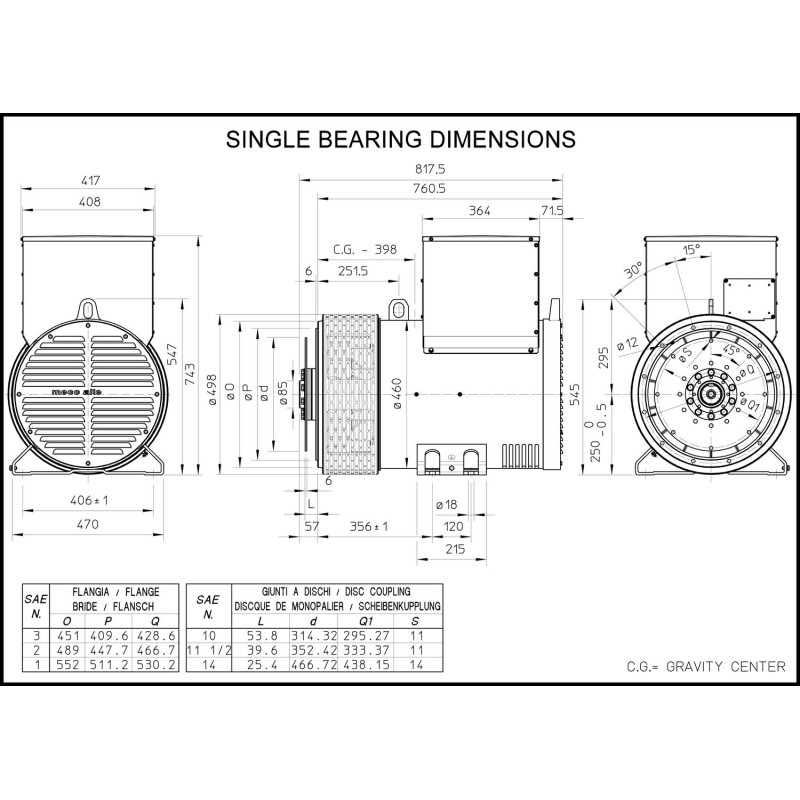The mechanical structure of the ECP34-2S/2 alternator, which is always very robust, allows easy access to the connections and enables the various components to be checked just as easily. The casing of the MECC ALTE is in cast iron, the shaft in C45 steel with splined fan. The degree of protection is IP23 (a higher degree of protection is possible on request).