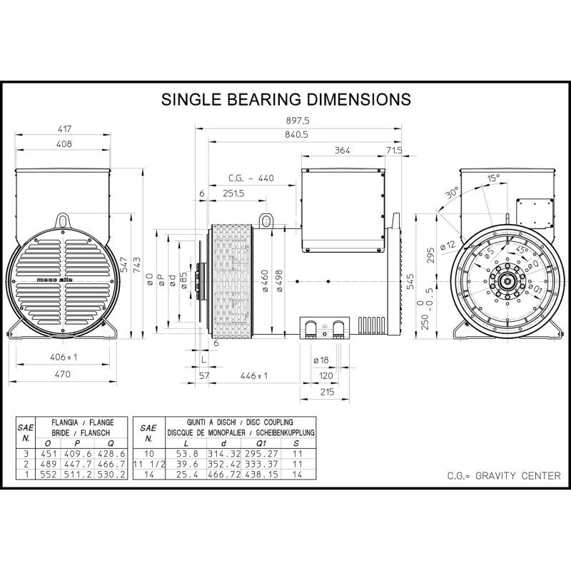 The MECC ALTE ECP34-2L/2 alternators are self-regulating, 2-pole brushless. They are equipped with a rotating inductor provided with a damping cage and a fixed armature with inclined slots. The windings are shortened pitch to reduce harmonic content.