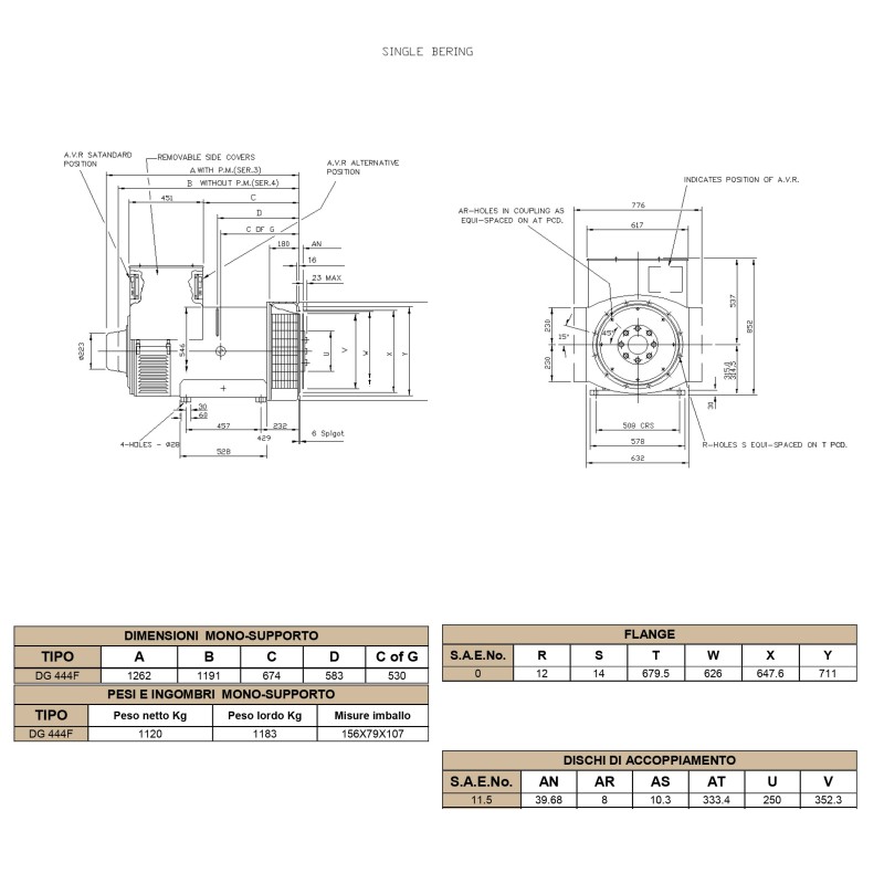 DINGOL DG444F is a three-phase brushless alternator capable of delivering a maximum power of 400KVA complete with AVR voltage regulator.