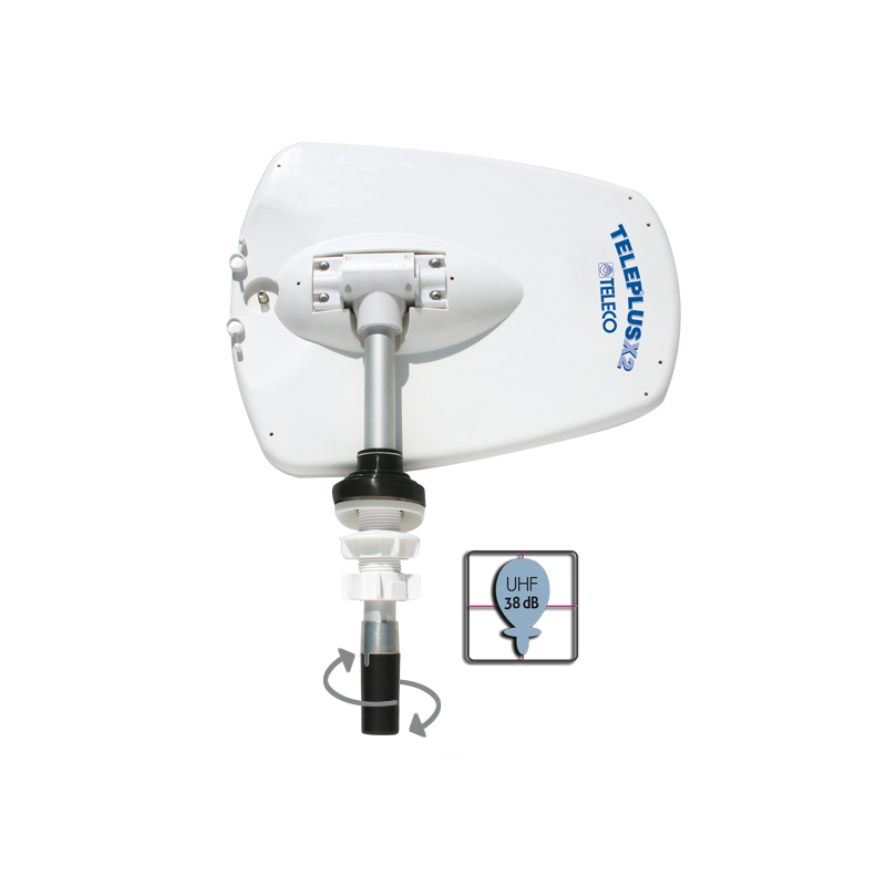 The TELECO TELAIR Teleplus X2-39U Digital and Analog Terrestrial Antenna uses high-quality materials such as zamak for the orientation mechanism, ensuring durability and resistance to wear. The 39 cm pole, designed for discreet installation inside a cabinet, makes it ideal for modern vehicles with limited space.