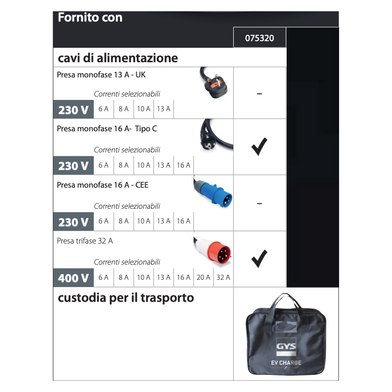 The SUPER PRO SMART - EV CHARGE Portable Charging Cable 230V-400V is a versatile and powerful charging solution designed to meet the needs of professionals working with electric and plug-in hybrid vehicles. This smart and portable charging cable allows the user to charge their vehicle as quickly as possible, adapting to the available power outlets (230V and 400V), offering rapid charging up to 32A.