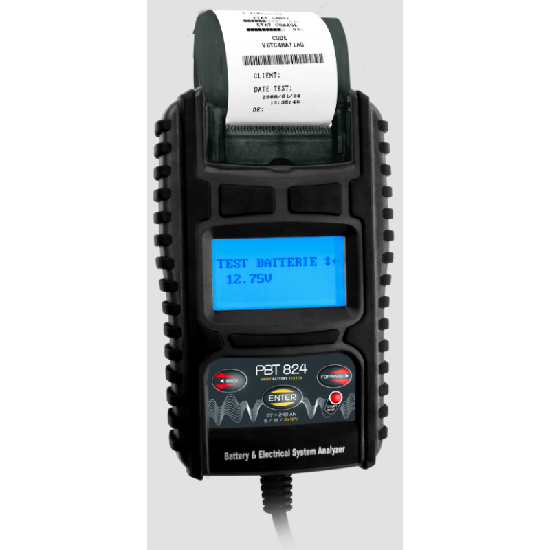 The PROFESSIONAL ELECTRONIC BATTERY TESTER PBT 824 is an advanced diagnostic tool designed to provide ultra-precise measurements and quick results on the vehicle's battery status. This tester is ideal for automotive professionals who need a reliable and precise tool for battery diagnostics.