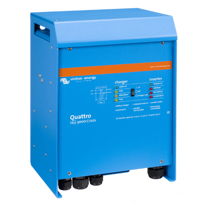 VICTRON Quattro 12/3000/120-50 combined inverter and charger with multiple functions, parallel and remote control.