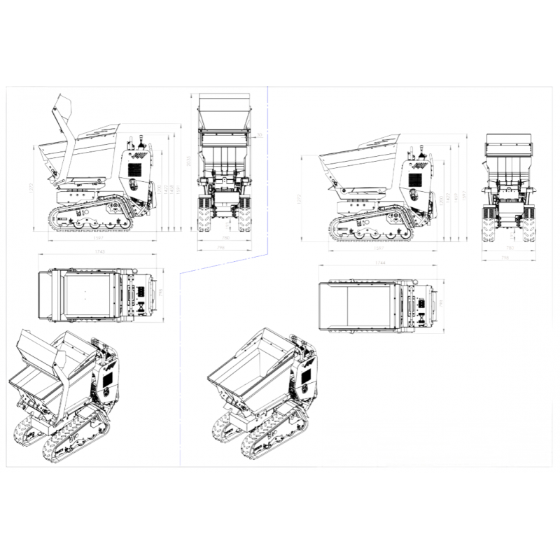0.32 m³ Dumper (Dumper 0.32m³): Provides good volumetric capacity for transporting various materials.