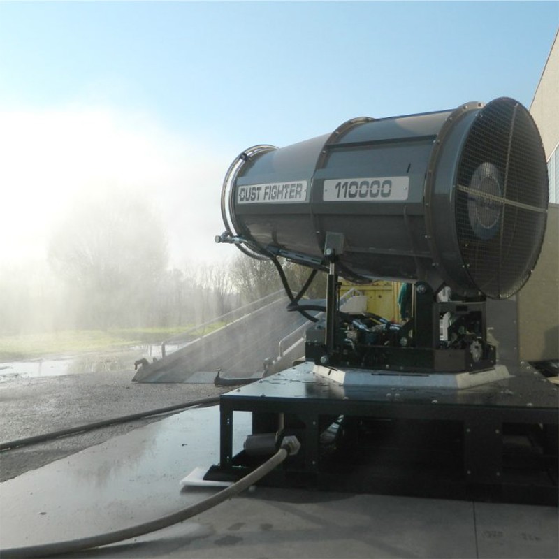 Thanks to the Dust Fighter GENERAC's nebulization system of water particles down to 180 microns, dust particles bind and fall to the ground more easily. In addition, the atomization method allows you to cover the entire dust cloud saving you significant amounts of water.