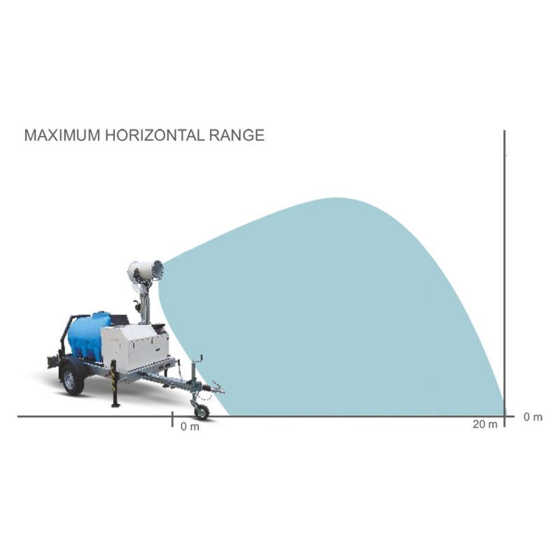 GENERAC Dust Fighter DF3000 MPT is a dust suppression system equipped with a Yanmar L70N Diesel powered engine, with a maximum horizontal coverage of 20 m.