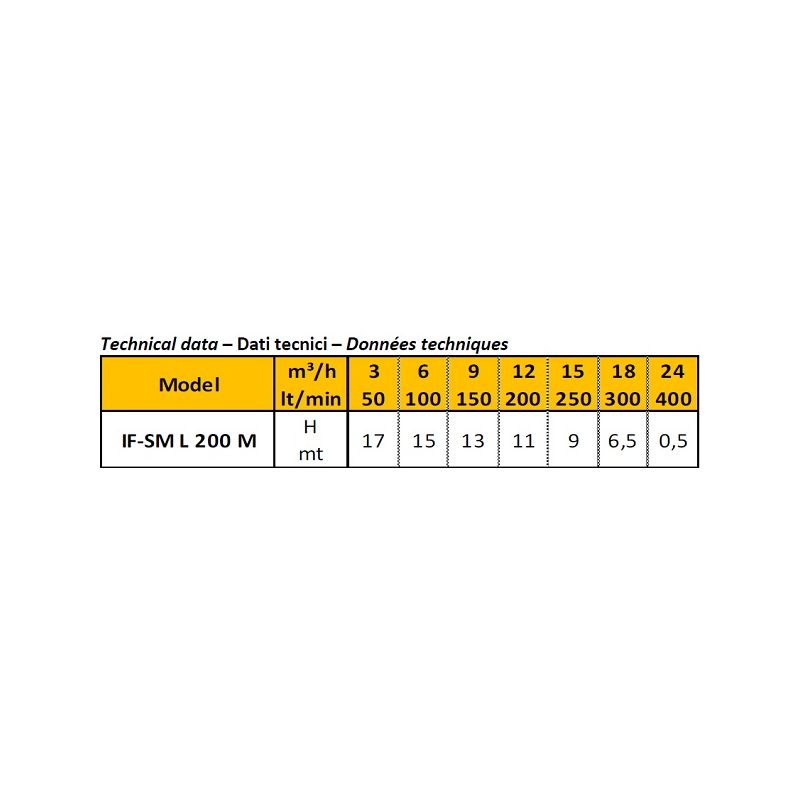 Phase Single phase Maximum power single phase (KW) 2.7 Frequency (Hz) 50 Voltage (V) 230 Net power (kW) 1.5 Fluid type Slightly sandy wastewaters Maximum output capacity (Lt/min) 400 Diameter (Ø) 2" Total head (m) 17 Current (A) 12.5 Condition New