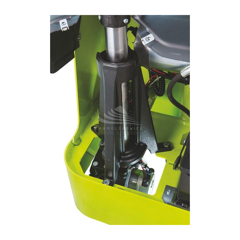 Measuring 1675 mm in length and 794 mm in width, with a turning radius of just 1344 mm, this loader is designed to navigate narrow spaces and corridors effortlessly. The ergonomic tiller, placed laterally, enhances visibility and ensures an optimal arrangement of components, facilitating the handling of goods in tight areas.