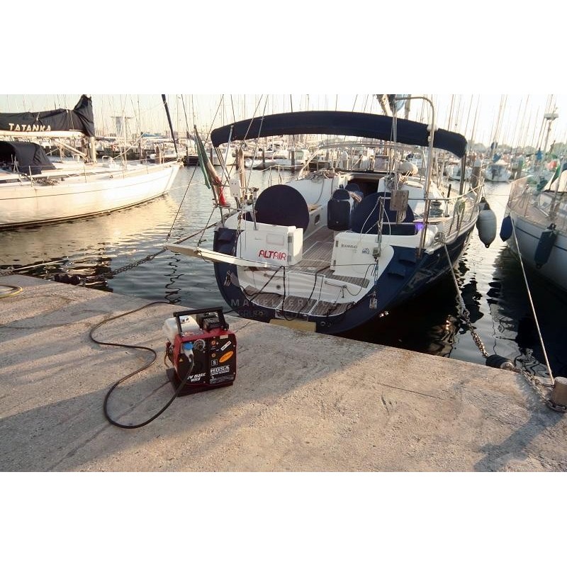 MOSA New Magic Weld is a motorwelder with gasoline engine for arc welding compact: the weight of the entire machine is only 34 kg. Powered by a Honda gasoline engine, it uses an innovative permanent magnet alternator to provide a welding current of up to 150 A DC.