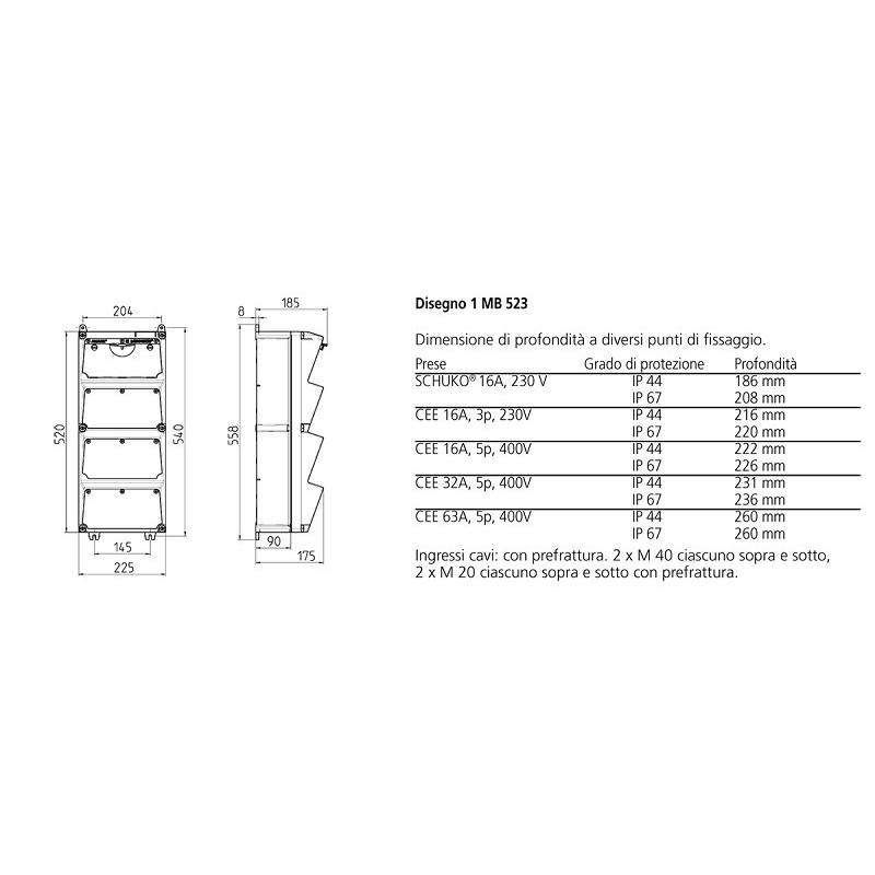 N.2 CEE 16 A, 3 P, 230 V DUO