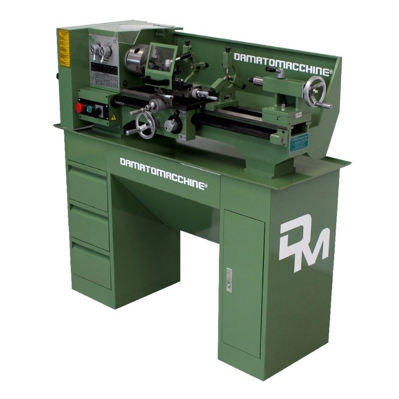 The NEWTON 20 plus DAMATOMACCHINE lathe is supplied in standard version with its new base (equipped with drawers and container doors), a 3 collet chuck (three internal and three external), two fixed tailstocks with tapered shank, n°2 bezels and all gears, its assembly keys.