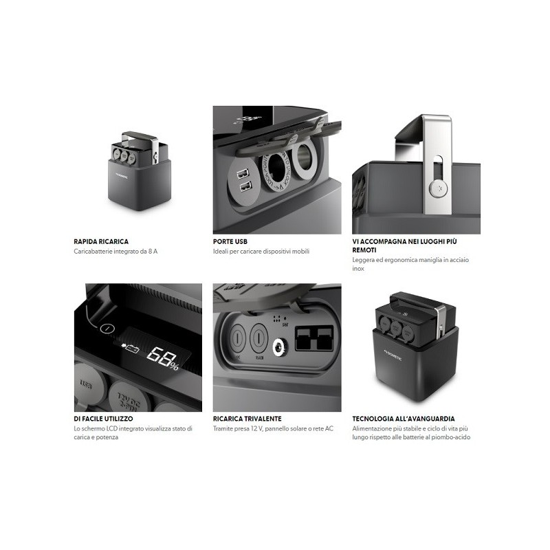 The Dometic PLB40 Ah lithium-iron-phosphate battery delivers high levels of moving energy: up to 40 hours of refrigeration for CFX 40W refrigerators on a single charge. Designed to power portable electric refrigerators and other 12 V devices disconnected from the mains. Thanks to the lightweight and compact design, you will appreciate the true independence and travel longer without the need to connect to the mains.