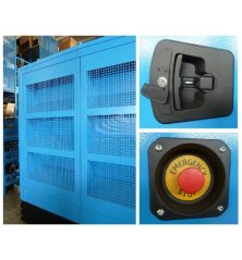 Phase Three phase Maximum power three phase (KW) 900 Continuous power three phase (KW) 818 Maximum power three phase (KVA) 1125 Continuous power three phase (KVA) 1022 Fuel Diesel Frequency (Hz) 50 Voltage (V) 400 Engine PERKINS 4008 TAG2A Engine rpm (rpm) 1500 Speed governor Electronic Starting system Electric Engine capacity (cm³) 30561 Number cylinders 8 Cylinders' position In line Cooling Water Alternator Marelli, brushless Poles 4 Protection degree IP44 Bore x stroke (mm) 108 x 130 Fuel tank capacity (L) 400 Consumption (L/h) 163 Running time (h) 2.5 at 75% of the load Acoustic pressure 70 dB(A) at 7 m Length (mm) 7050 Width (mm) 2400 Height (mm) 3500 Dry weight (Kg) 9450 Silenced Yes Super silenced Yes ATS Switch device No Voltage regulator AVR Engine manufacturer Perkins Condition New