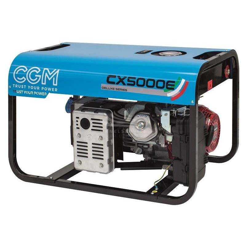 The generator CGM CX5000E is part of the DELUXE series and is easily adaptable to various uses such as homes, mobile facilities, camping, hobbies, construction sites, etc.. The CX5000E generator set at 3000 rpm is suitable for emergency use only. It is not recommended to be used for more than 6 hours continuously and for more than 500 hours per year.