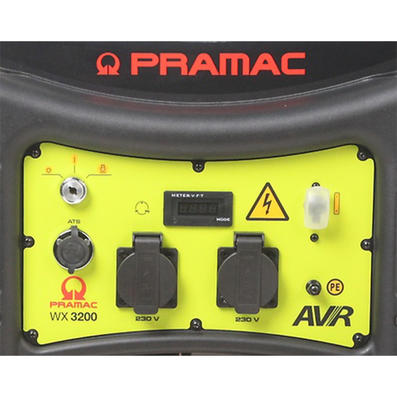 PRAMAC WX 3200 ES is a single-phase generator equipped with a Pramac OHV StageV petrol-powered engine, capable of delivering a maximum power of 2,85 KVA complete with AVR voltage regulator.