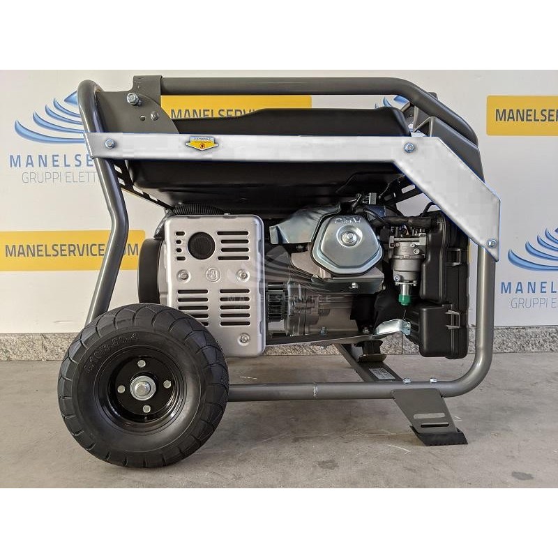 Generator Single-phase with STAGEV petrol engine at 3000 rpm, capable of delivering a maximum power of 6 KVA, with transport trolley supplied as standard, complete with AVR voltage regulator.
