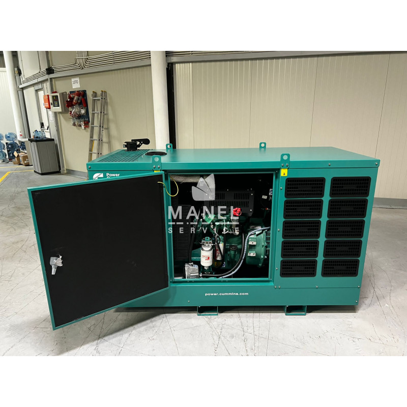 The Generator is equipped with an electric start and with low fuel consumption, in fact it consumes about 5 litres/hour at 75% of the load for an autonomy of up to 11 hours of operation. The generating set guarantees efficient and silent operation thanks to the Cummins X2.5-G2 engine, which allows for the delivery of a maximum power of 27.5KVA.