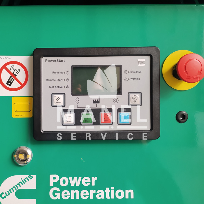 The CUMMINS C38D5Q is equipped with electric, manual or automatic start with a 12 V battery, and is equipped with a PowerStart 600 ECU which allows you to view all the parameters electrics of the engine and generator, of the functions, status of the generator set, manage the group entirely and display, if any, the errors or alarms of the system.