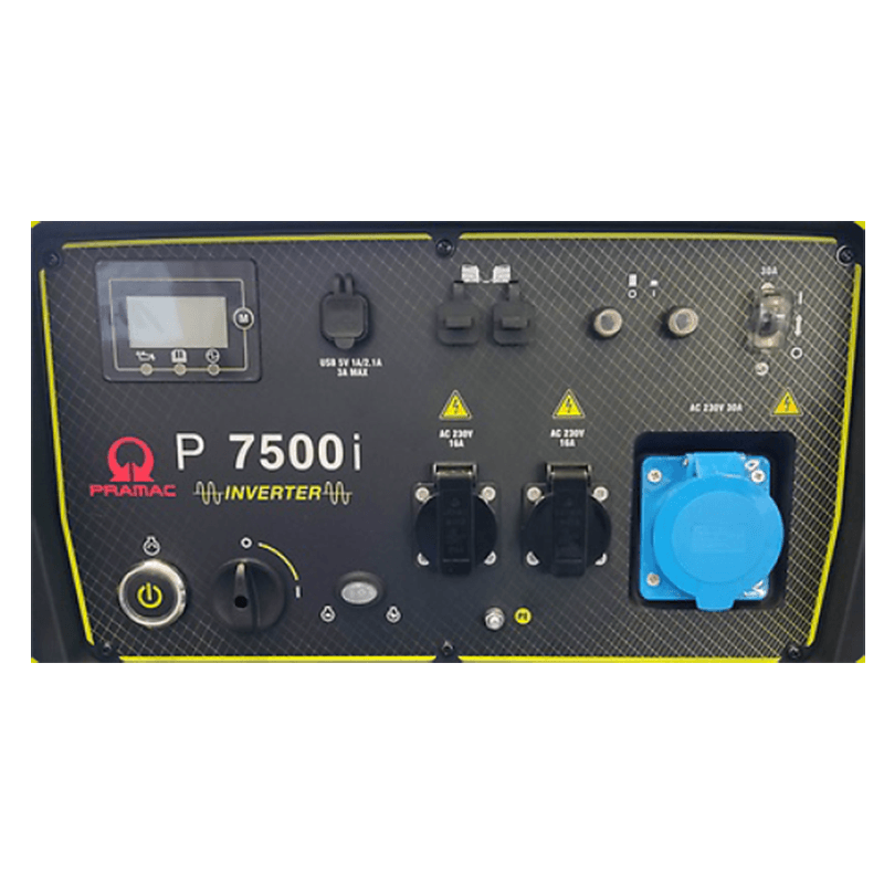 The PRAMAC P7500i single-phase generator is equipped with a StageV OHV Petrol Engine, capable of delivering a maximum power of 7KVA, complete with an Inverter voltage regulator.
