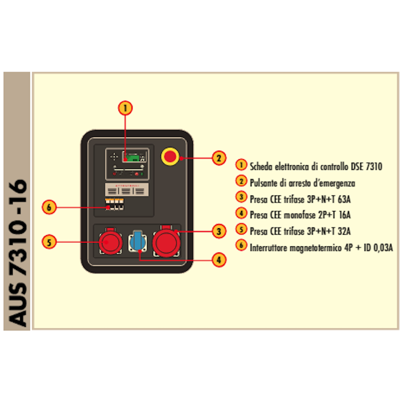 Control and protection unit: monitors operating parameters and ensures generator safety.