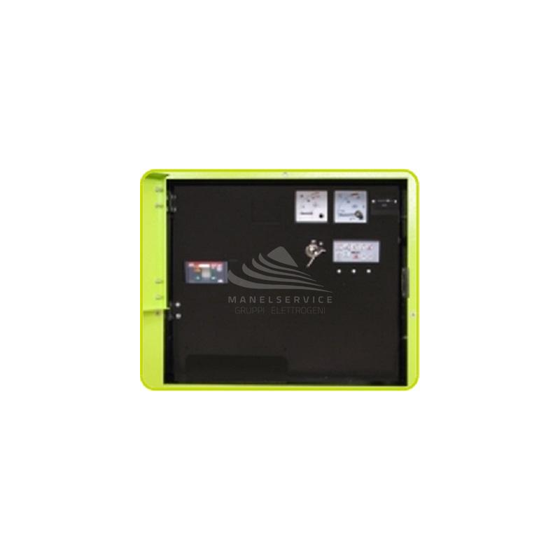 Motore Diesel. Predisposto per Biodiesel. Raffreddamento ad olio con radiatore. Silenziatore industriale. Base forcabile con carrelli. Liquidi motore e batteria carica
