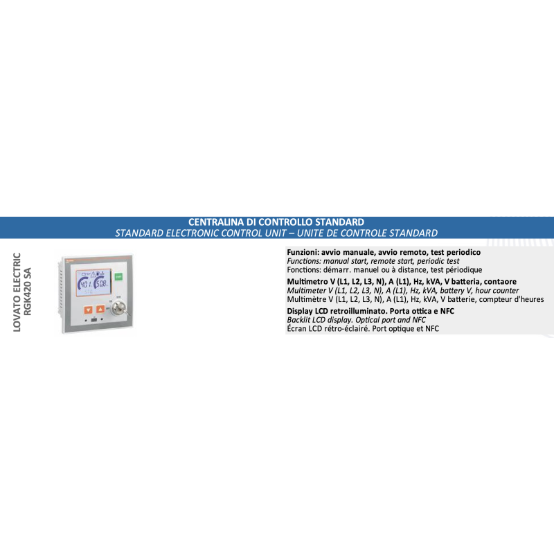 which allows automatic start-up in case of power failure. Finally, the AVR voltage regulator ensures stable and precise voltage,