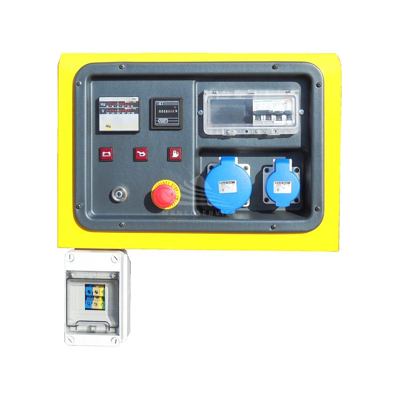 Phase Single phase Maximum power single phase (KW) 8 Maximum power single phase (KVA) 10 Fuel Gasoline Frequency (Hz) 50 Voltage (V) 230 Sockets configuration 1 x 230V 16A 3P CEE - 1 x 230V 32A 3P CEE Engine Honda GX630R Engine rpm (rpm) 3000 Starting system Electric Engine capacity (cm³) 688 Number cylinders 2 Oil capacity (L) 1.9 Cooling Air Fuel tank capacity (L) 20 Consumption (L/h) 3.9 at 100% of the load Running time (h) 5.12 at 100% of the load Acoustic power 100 dB(A) Acoustic pressure 75 dB(A) at 7 m Length (mm) 990 Width (mm) 550 Height (mm) 670 Dry weight (Kg) 123 Silenced No Super silenced No ATS Switch device Optional Voltage regulator No Engine manufacturer Honda Condition New