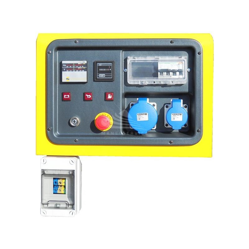 Phase Single phase Maximum power single phase (KW) 8 Maximum power single phase (KVA) 10 Fuel Gasoline Frequency (Hz) 50 Voltage (V) 230 Sockets configuration 1 x 230V 16A 3P CEE - 1 x 230V 32A 3P CEE Engine Honda GX630 Engine rpm (rpm) 3000 Starting system Electric Engine capacity (cm³) 389 Number cylinders 2 Oil capacity (L) 1.8 Cooling Air Fuel tank capacity (L) 20 Consumption (L/h) 4.1 at 100% of the load Running time (h) 4.87 at 100% of the load Acoustic power 100 dB(A) Acoustic pressure 75 dB(A) at 7 m Length (mm) 990 Width (mm) 550 Height (mm) 670 Dry weight (Kg) 123 Silenced No Super silenced No ATS Switch device Optional Voltage regulator AVR Engine manufacturer Honda Condition New