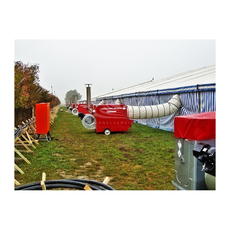 BM2 JUMBO 235T is a three-phase indirect combustion hot air generator, capable of heating very large rooms with the possibility of installing oil, natural gas and LPG burners.
