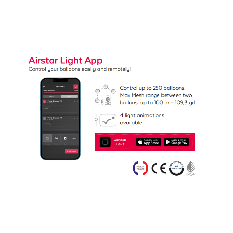 With the AIRSTAR Light App, you can easily control up to 250 light balloons, with