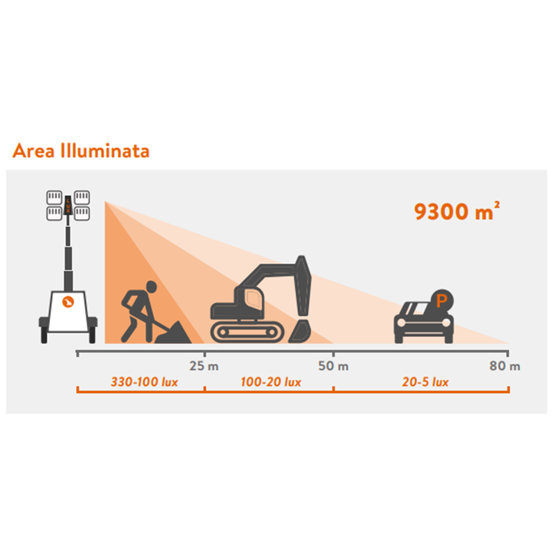 The LUXTOWER Lux M11PLUS is a compact and easily transportable light tower that can effectively illuminate areas up to 9300 sqm, with a reduced environmental impact.