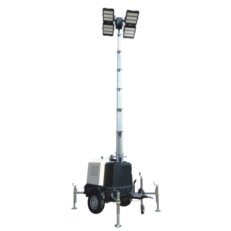 Mobile Lighting Tower equipped with four 320W Led floodlights that can be raised to a height of 8.5 m, capable of illuminating an area of 4500 m2.