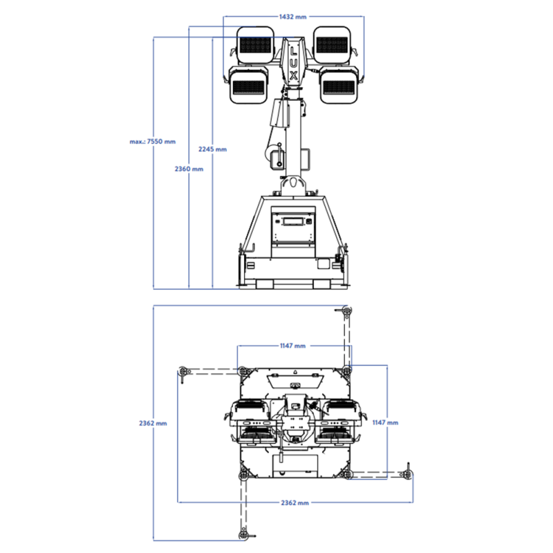 Thanks to its 4x100W LED floodlights, it provides up to 3000 m² of lighting coverage, ensuring maximum visibility at construction sites, events, and nighttime operations.