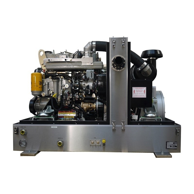 The generators are heavier than standard PMS generators. They use a heavy-duty diesel engine and because they run at 1500 rpm, they have a 4-wire coil, which also means that the alternator has a heavier 4-pole construction.