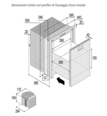 Dual door position (DOOR INSIDE-DOOR OUTSIDE) with a single fixing profile for greater installation flexibility.