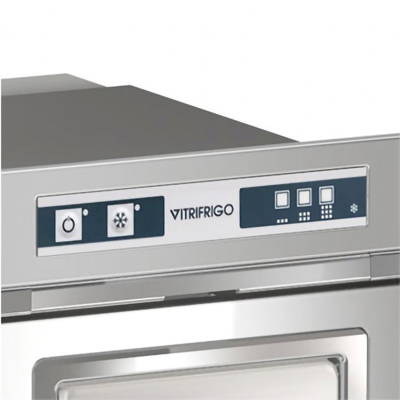 The thermostat functions VITRIFRIGO, managed through an on/off button and freezer mode with 3 temperature settings up to -18°C,