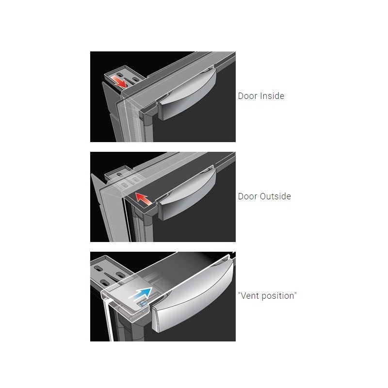 ensuring rapid door reversibility and an integrated \"vent position\"" system to keep the door slightly ajar and