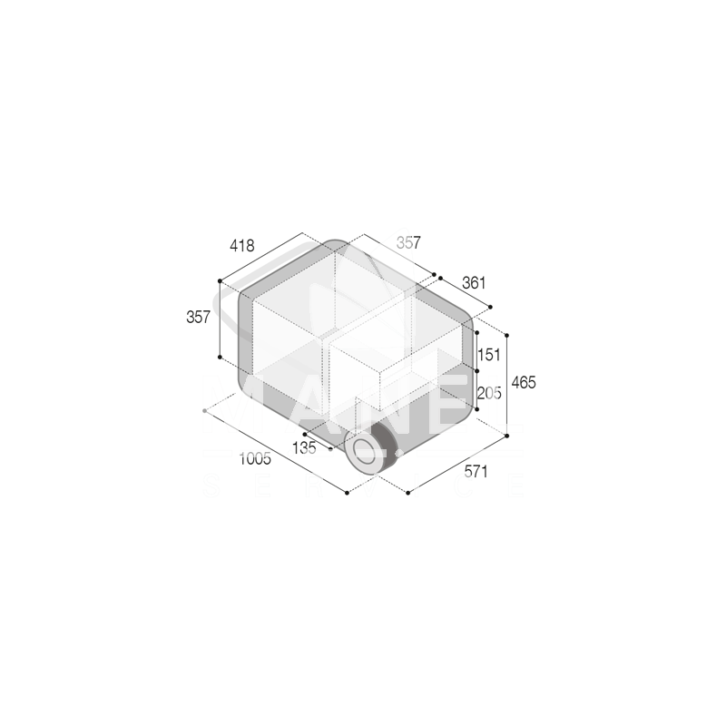 The overall dimensions of the VITRIFRIGO VFD95 are 1005 mm in width, 465 mm in height,