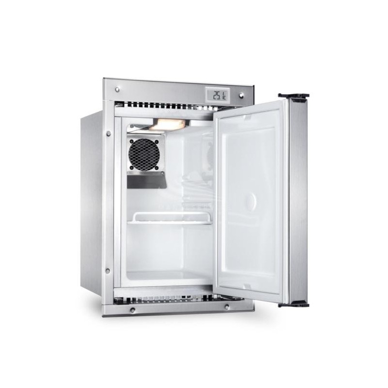 The Dometic CoolMatic MR 07 is a fridge you can trust. Its reliable fixed point +5 °C (±1 °C) makes it ideal for safely transporting heat sensitive products. It has an additional integrated fan to ensure the effective distribution of cool air and a digital temperature display which allows for convenient monitoring of the temperature. Compact in design, the 7 l fridge is ideal for small spaces and neatly fits into the wall with its flush installation. Made from durable stainless steel, it is designed to deal with all the knocks and bangs that a mobile fridge inevitably encounters.