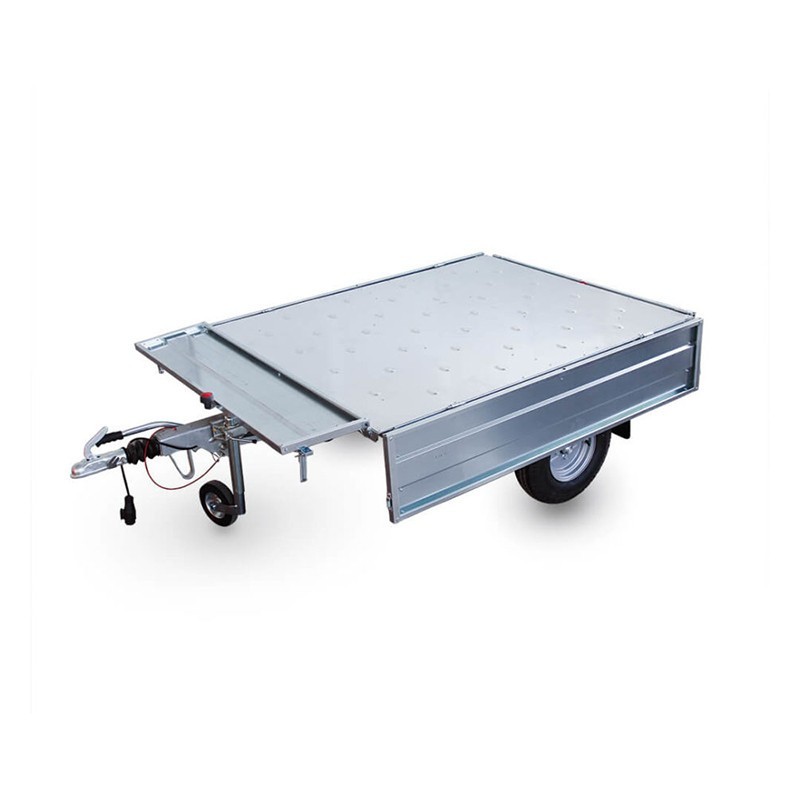 Trailer OLI-COUNTRY multi-function equipped with 4 openable side panels, reversing light and telescopic wheel supplied as standard with the trailer.