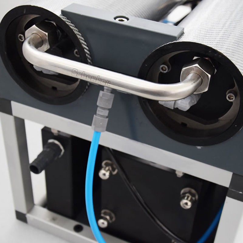 Schenker systems, as an alternative to the high-pressure pumps of conventional systems, use the new patented ERS device, which amplifies the pressure provided by low-pressure pumps, allowing a very high energy efficiency. The typical power consumption of a SCHENKER MODULAR 100 BASIC is only 4 Watth/liter.