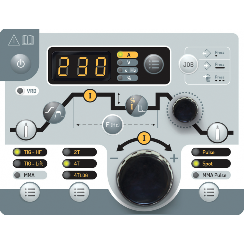 TIG 230 V: 160 A @ 23% / 140 A @ 60% / 120 A @ 100%